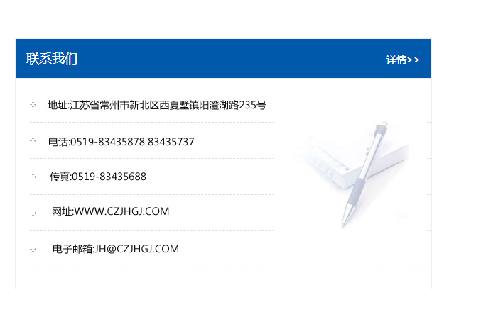 地址:常州市新北區友邦商務大廈1幢16、17層  電話:0519-85101652  傳真:0519-85112595  郵編:213022  網址:www_cz-jiayue_cn.jhqygyp.com  郵箱:xiajifengaa@163.com